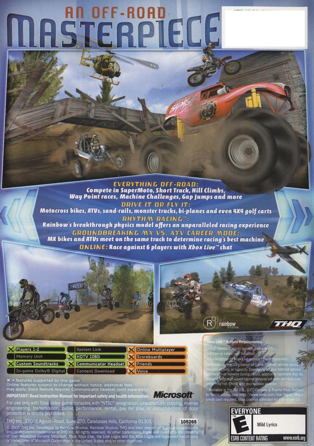 MX vs. ATV Unleashed lets you drive off-road in different vehicles, including ATVs, monster trucks, and sand rails, in an effort to conquer all-new racing challenges. You can compete in new racing events, minigames, or challenges, such as hill climbs, freestyle, gap jumps, and short-track races. Begin a career in single-player mode, or take on your friends in online multiplayer modes. A new "rhythm racing" mode lets you race through the game's nonlinear environments.